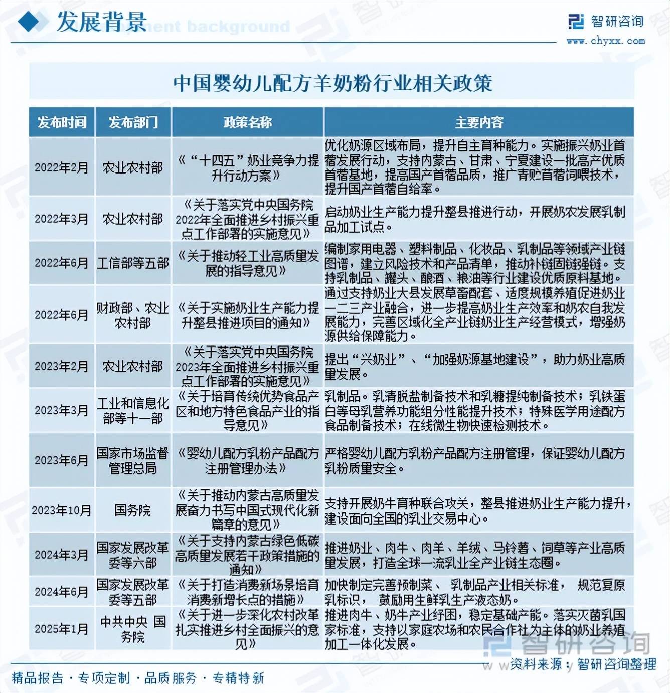 了解更多婴幼儿配方羊奶粉行业的深度研究分析和全面数据,请关注智研咨询发布的《中国婴幼儿配方羊奶粉行业市场现状调查及产业前景研判报告》。本《报告》从2025年全国婴幼儿配方羊奶粉行业发展环境、整体运行态势、运行现状、进出口、竞争格局等角度进行入手,系统、客观的对我国婴幼儿配方羊奶粉行业发展运行进行了深度剖析,展望2025年中国婴幼儿配方羊奶粉行业发展趋势。《报告》是系统分析2025年度中国婴幼儿配方羊奶粉行业发展状况的著作,对于全面了解中国婴幼儿配方羊奶粉行业的发展状况、开展与婴幼儿配方羊奶粉行业发展相关的学术研究和实践,具有重要的借鉴价值,可供从事婴幼儿配方羊奶粉行业相关的政府部门、科研机构、产业企业等相关人员阅读参考。